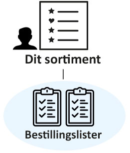 Med udgangspunkt i Dit sortiment, kan du oprette dine egne individuelle bestillingslister, så du opnår det bedst mulige overblik over dine køb.